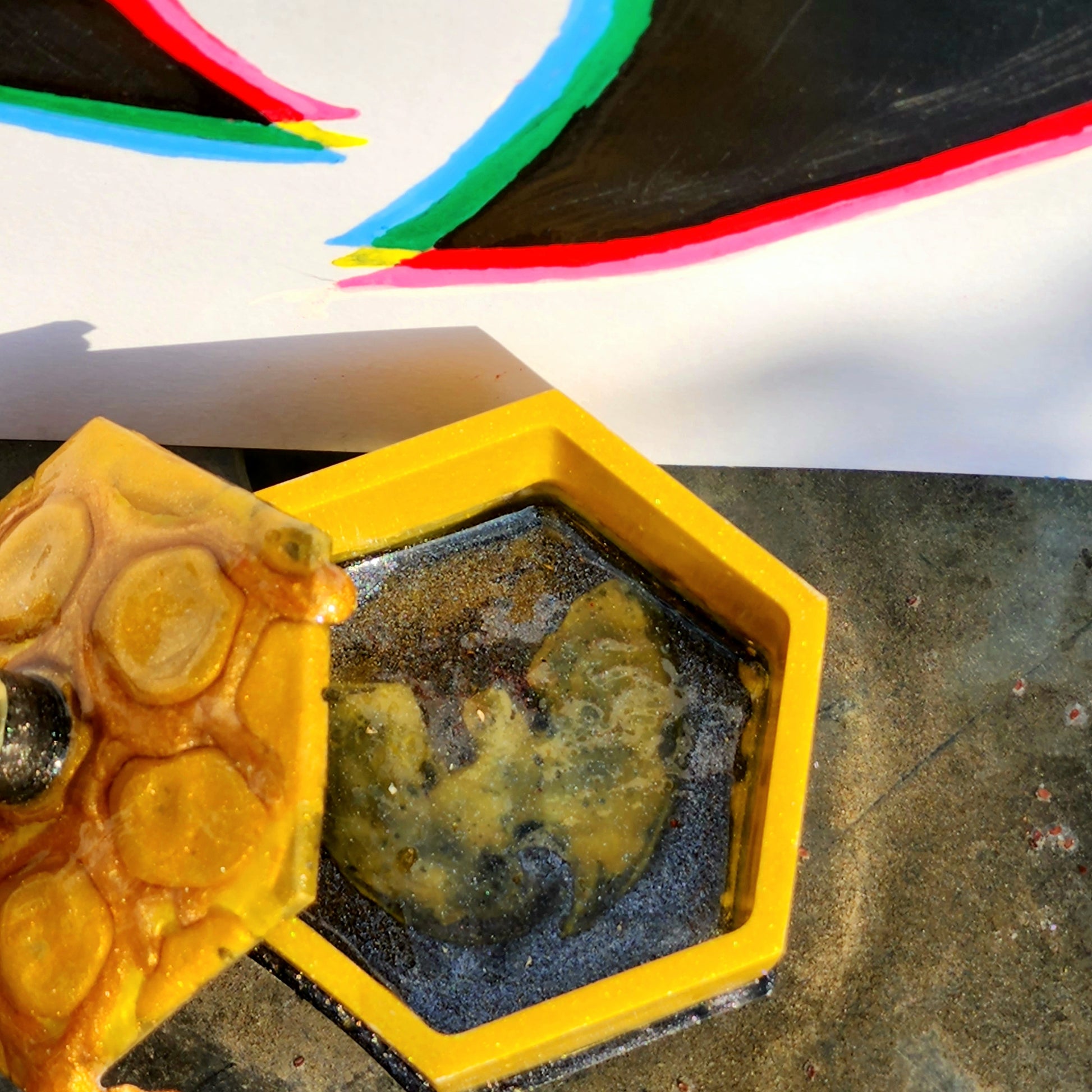 Some of these pieces are UV Light reactive! There is also a Carpenter Bee featured in the center of the ashtray.